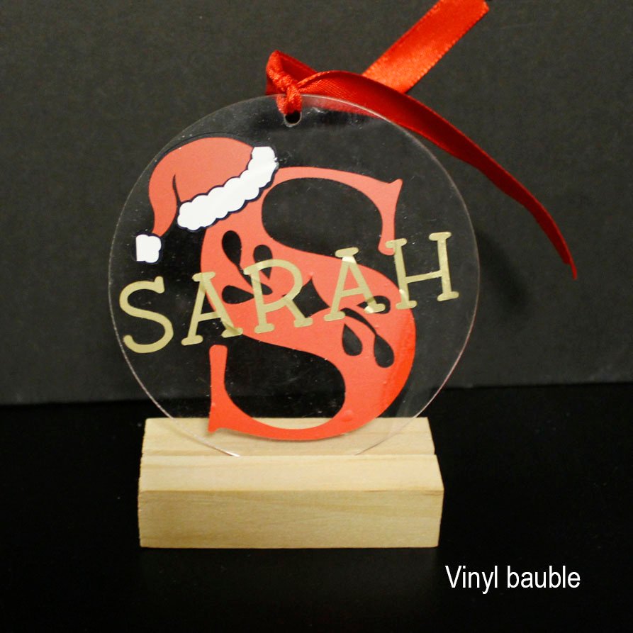 Santa Hat Initial Bauble Display – Custom Vinyl Personalisation