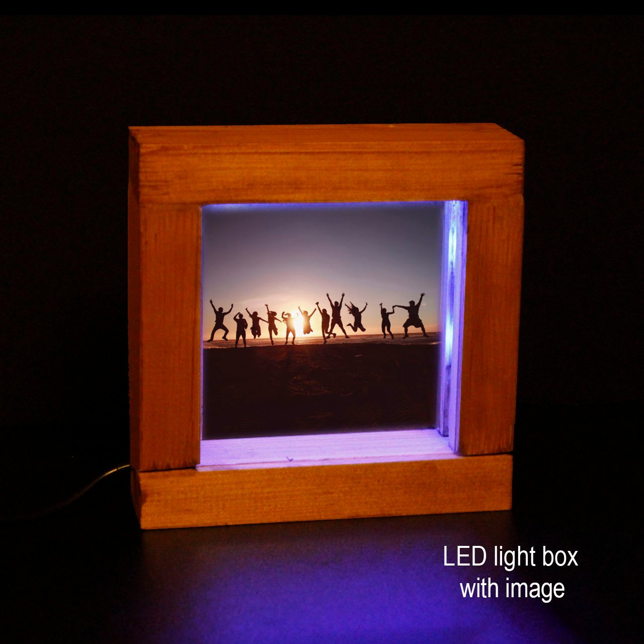 Showcase your cherished memories in a unique and enchanting way with this LED wooden box frame. Crafted from high-quality wood, the frame features built-in LED lights that delicately illuminate your image, creating a captivating 3D-like effect that makes it appear as if your artwork or photo is floating inside the box.