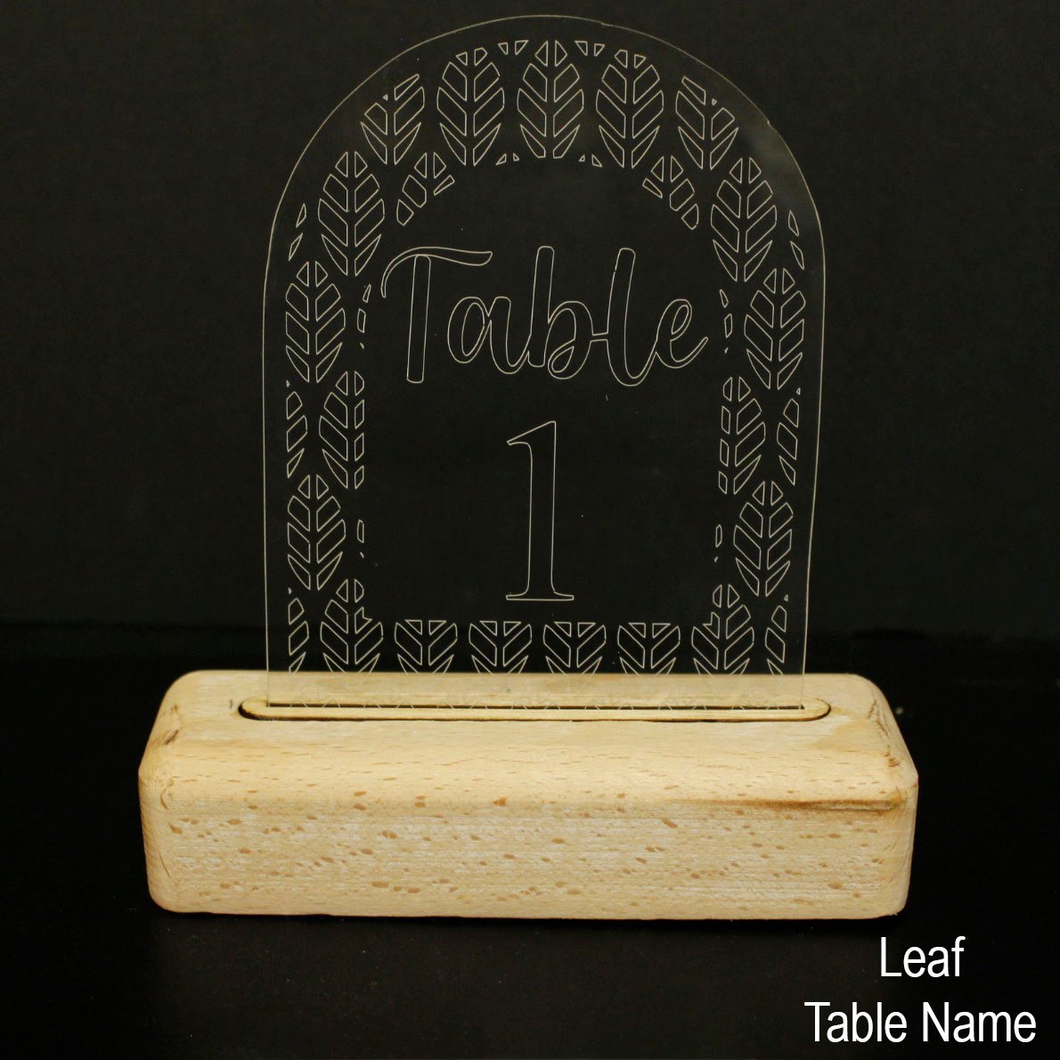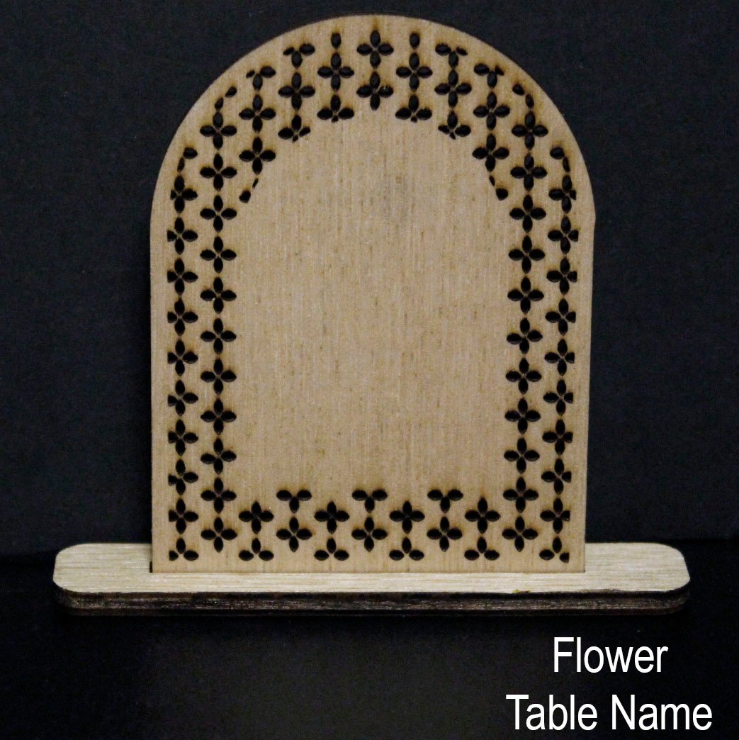 Featuring intricate edge details — from leaves and arches to eyes and other signature styles — these acrylic pieces offer a sleek, modern finish while keeping all the character of the original designs. Precision cut and engraved for a crisp, clean look, each table name can be personalised to suit your theme perfectly.
